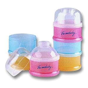 This comes with handy stacking containers that hold enough cereal or formula. This can be used separately. This is holds enough serials as much as 2-3 bottles. This is a Thermobaby product.