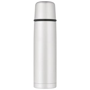 With a light and compact design, this Thermos stainless-steel bottle is easy to take on the go and will hold up to daily use. Made to fit in a briefcase, backpack, luggage, or purse, the bottle has a tempered, unbreakable stainless-steel liner and outer shell to prevent denting and to keep contents fresher longer. Able to carry up to 16 ounces of beverage or soup, the Thermos is vacuum insulated to keep contents hot for up to 12 hours or cold for up to 24 hours. Two layers of stainless steel surround an airless pocket for long-lasting insulation. The Thermos features a leak-proof design with a pour spout and twist opening, as well as a smooth interior for easy, sanitary cleaning. It measures 10 inches high with a 2.9-inch diameter, weighs 9/10 of one pound, and comes covered by a full 5-year warranty.